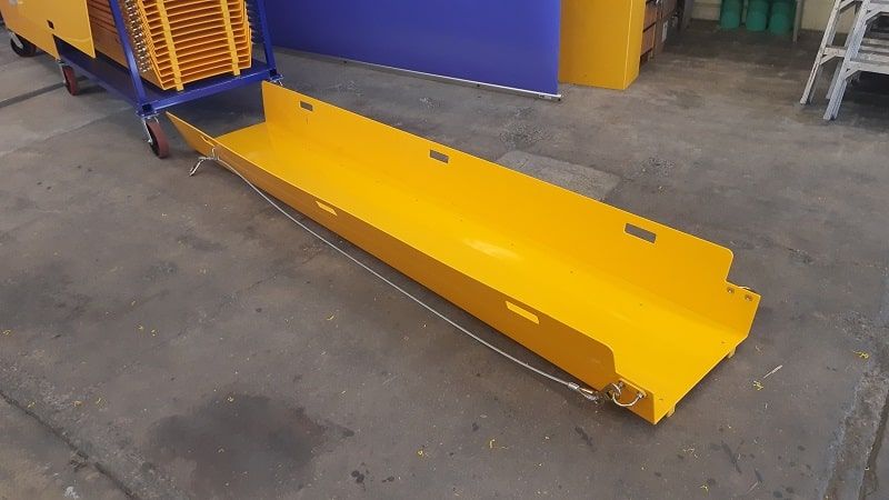 Materials can tumble from the slide. Prevent injury by keeping the area around the slide cordoned off and clear of people.